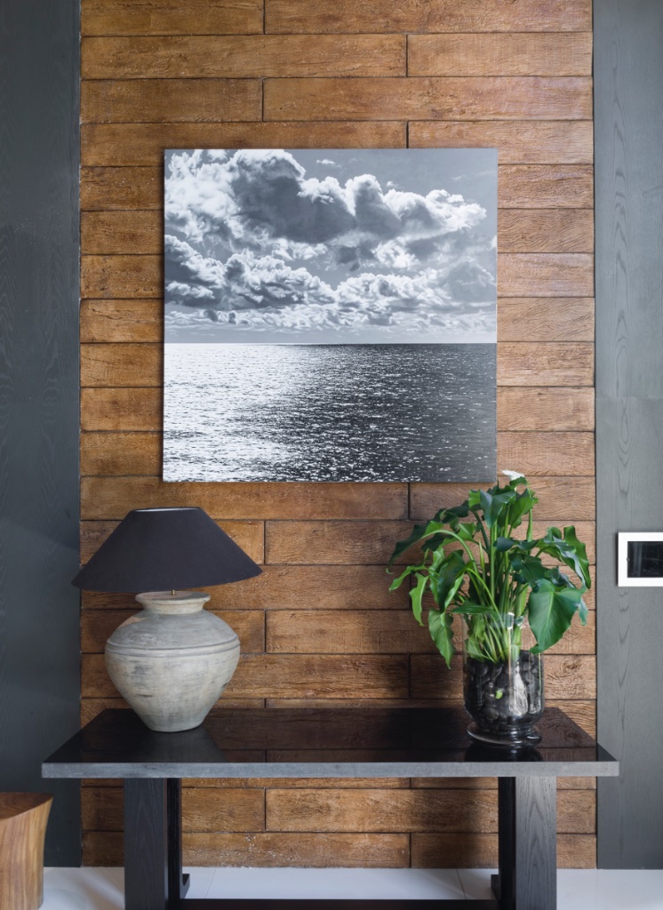 Laja Fina Gris Oscuro y listones de madera